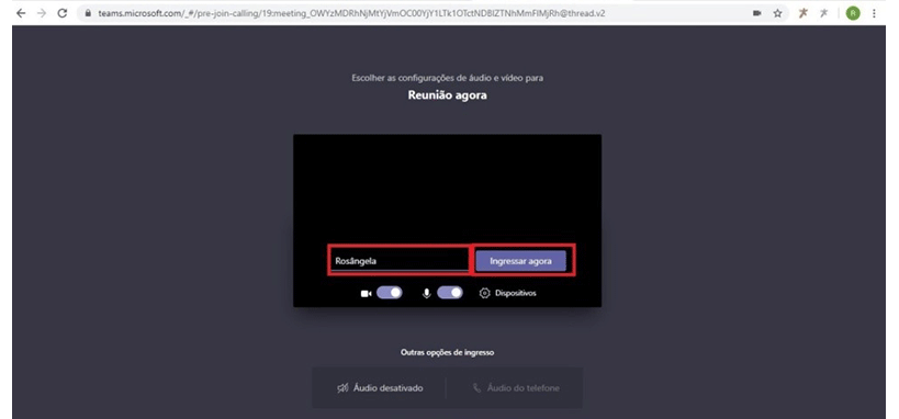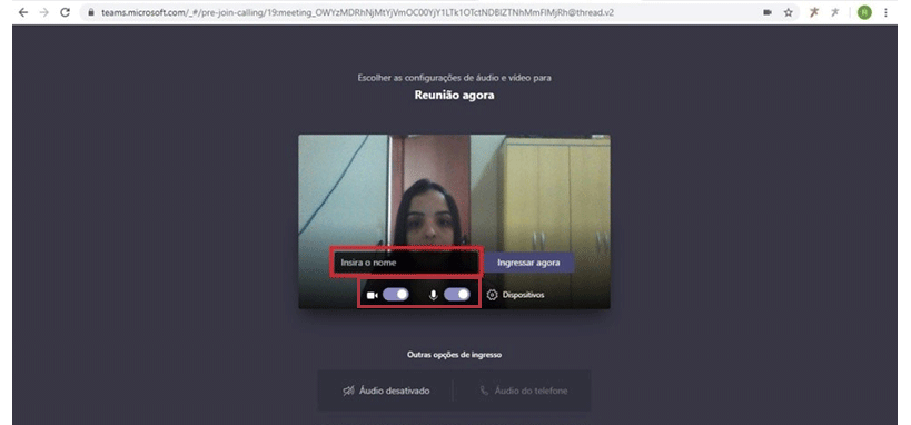 2 – Insira o nome e habilite o áudio e o vídeo.