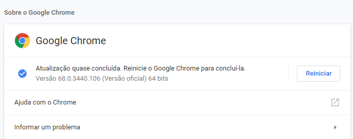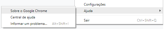- Clique no menu “ajuda” e depois clique em “sobre o Gooogle Chrome”