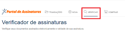 Após se logar em sua conta do Portal de Assinaturas, clique na opção VERIFICAR