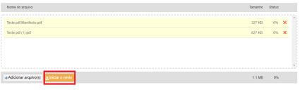 Clique em Iniciar o envio e aguarde os arquivos serem carregados com sucesso.