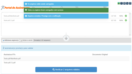 Para verificar 2 ou mais documentos utilize a opção “Carregar lote de assinaturas”