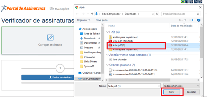 Selecione o documento assinado e clique em Abrir.