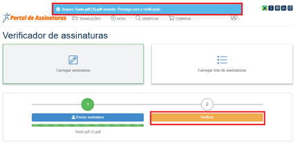 Após o documento ser carregado com sucesso, clique em Verificar.